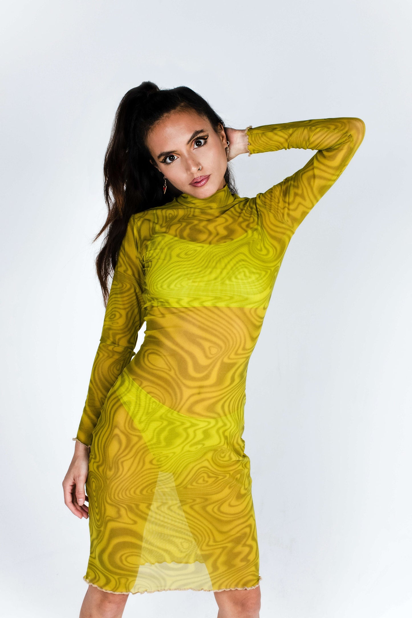 Long-Sleeved Mesh Dress Turtleneck "TURTUGITA"