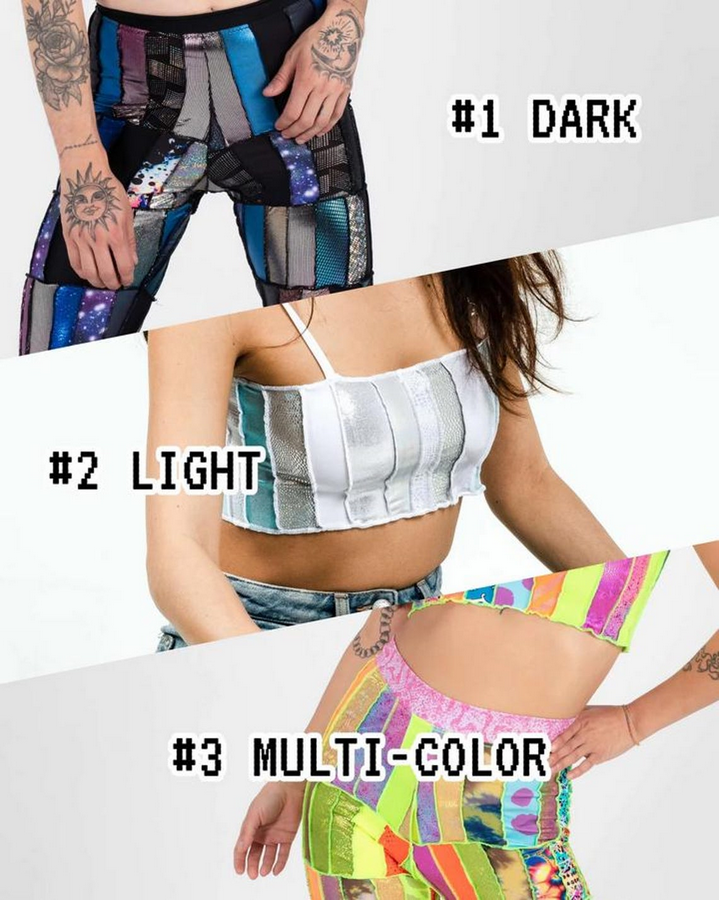 I craft patchwork fabrics from cutting waste scraps, transforming them into one-of-a-kind clothing pieces. If you have a specific color combination in mind, feel free to leave a comment at checkout or send me a message.