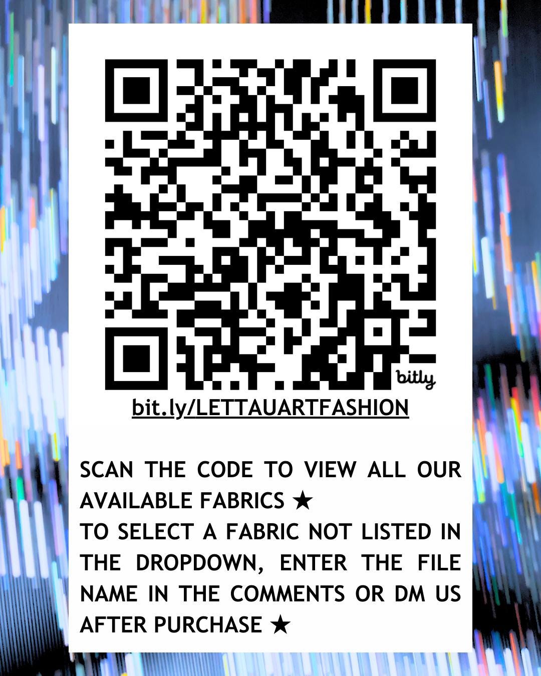 View all available fabrics by typing bit.ly/lettauartfashion into your browser or scanning the QR code.