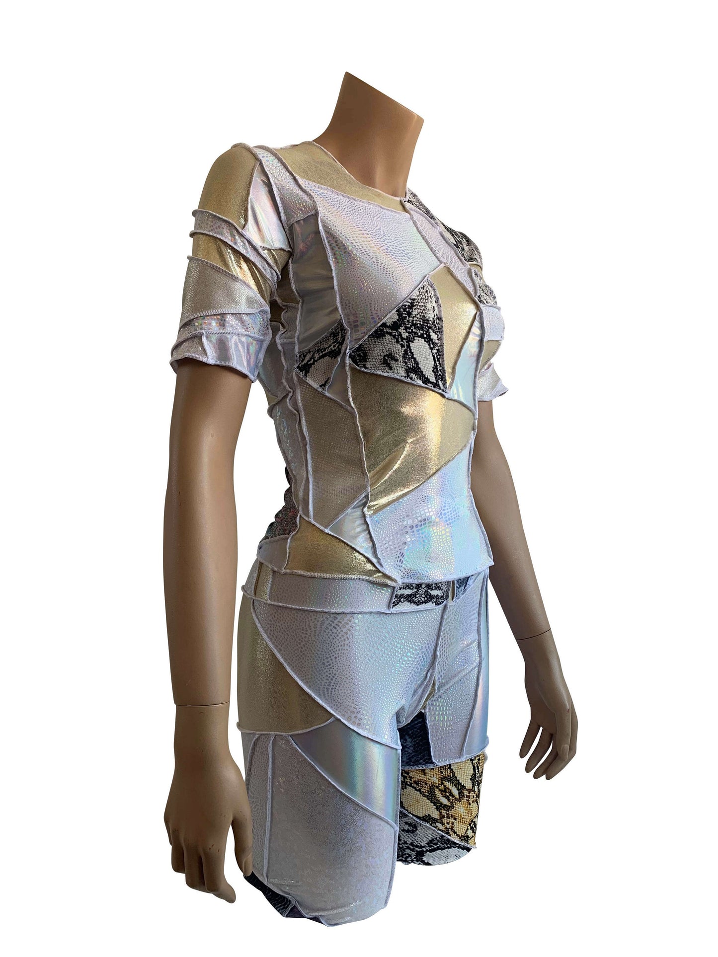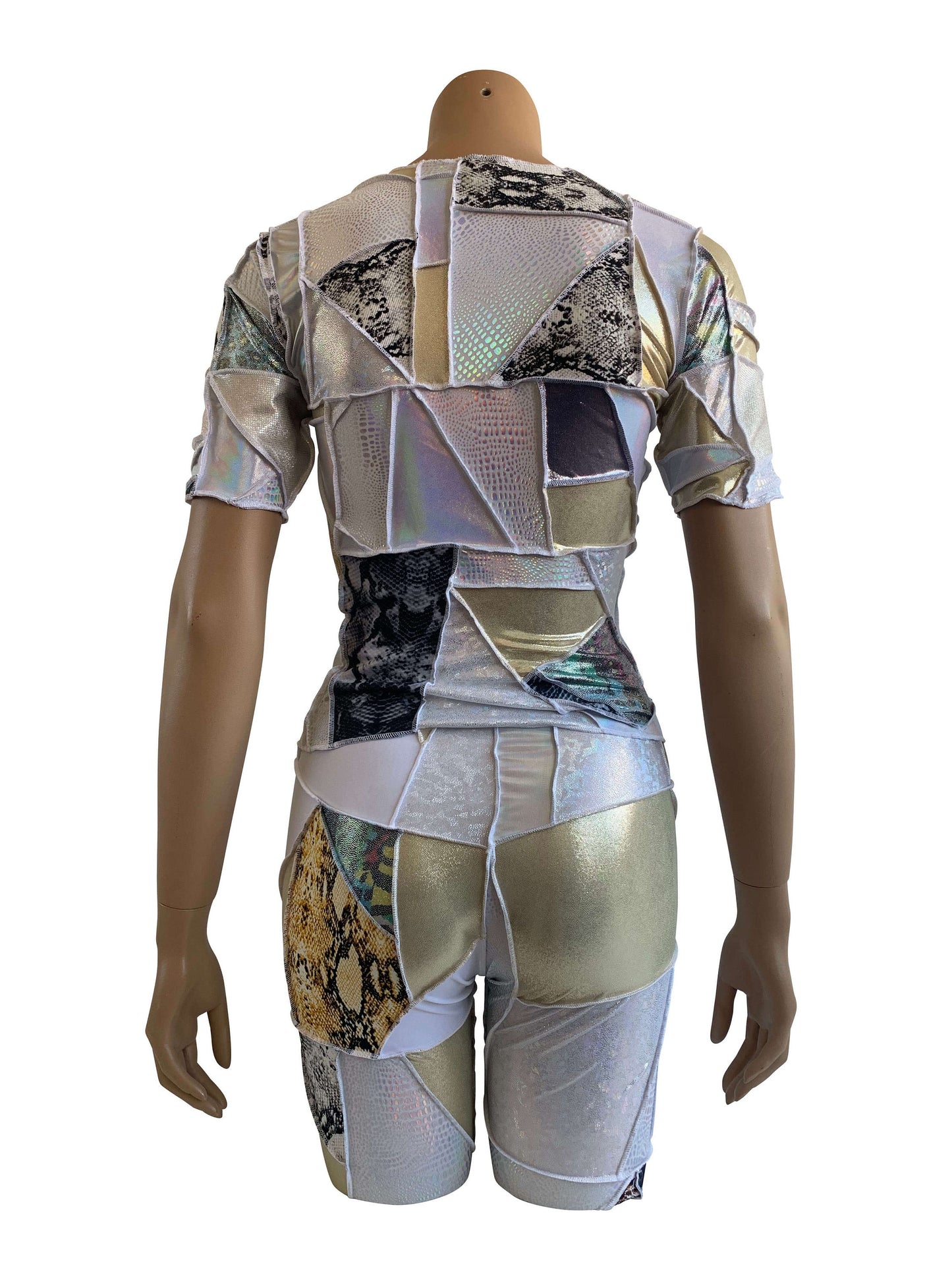 I craft patchwork fabrics from cutting waste scraps, transforming them into one-of-a-kind clothing pieces. If you have a specific color combination in mind, feel free to leave a comment at checkout or send me a message.